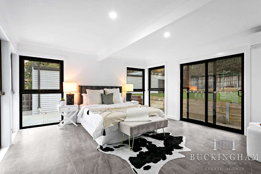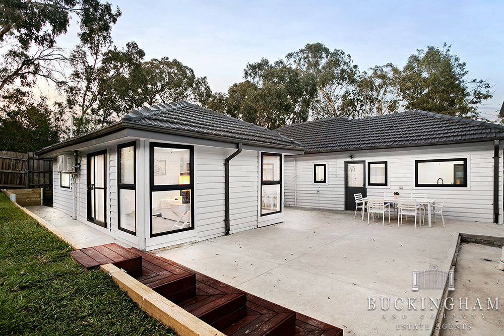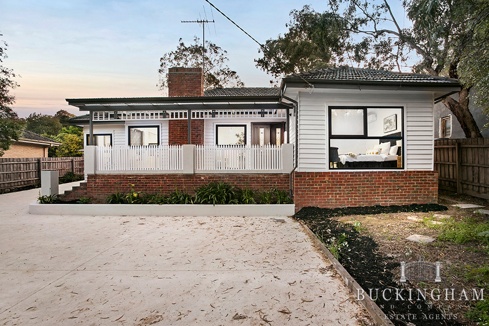 This gleaming weatherboard home is simply irresistible, teaming many contemporary features with a quality renovation. The immaculate interior features crisp neutral décor, lots of natural light and chic designer touches throughout an inviting living room with open fireplace, gourmet kitchen/dining with shaker-style cabinetry, s/steel cooking and butlers pantry, 3 beautiful bedrooms, 2 designer bathrooms and study/4th bedroom. The sunny rear garden has a large BBQ zone, private studio and a lovely leafy backdrop, while other highlights include split system heating/cooling, lockup garage and ample off-street parking. Central to Montmorency, Eltham and Greensborough amenities – inspection is bound to delight.