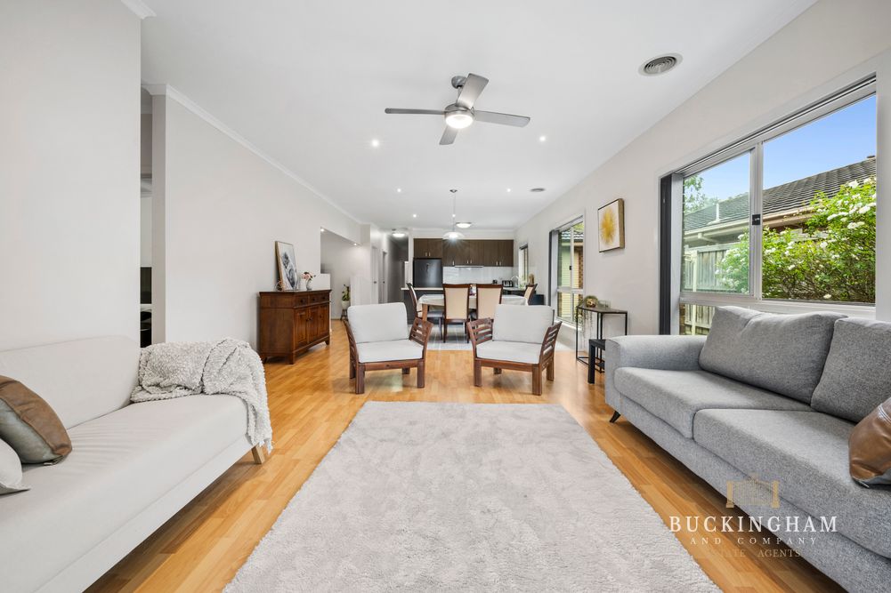 Walking distance to Laurimar Primary & day care centres, the multi-textured façade leads to a spacious entry allowing the bedrooms & living areas all the privacy modern life demands. An office or retreat joins the spacious master bedroom which overlooks the ancient gums in the reserve opposite. Centrally positioned, a family kitchen offers decent preparation space via the vacant island bench, 900mm stainless steel appliances, microwave space, dishwasher & high clearance walk in pantry. Curl up or entertain in any of the two appealing living areas or the east facing alfresco for entertaining on summer nights.