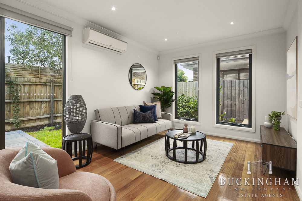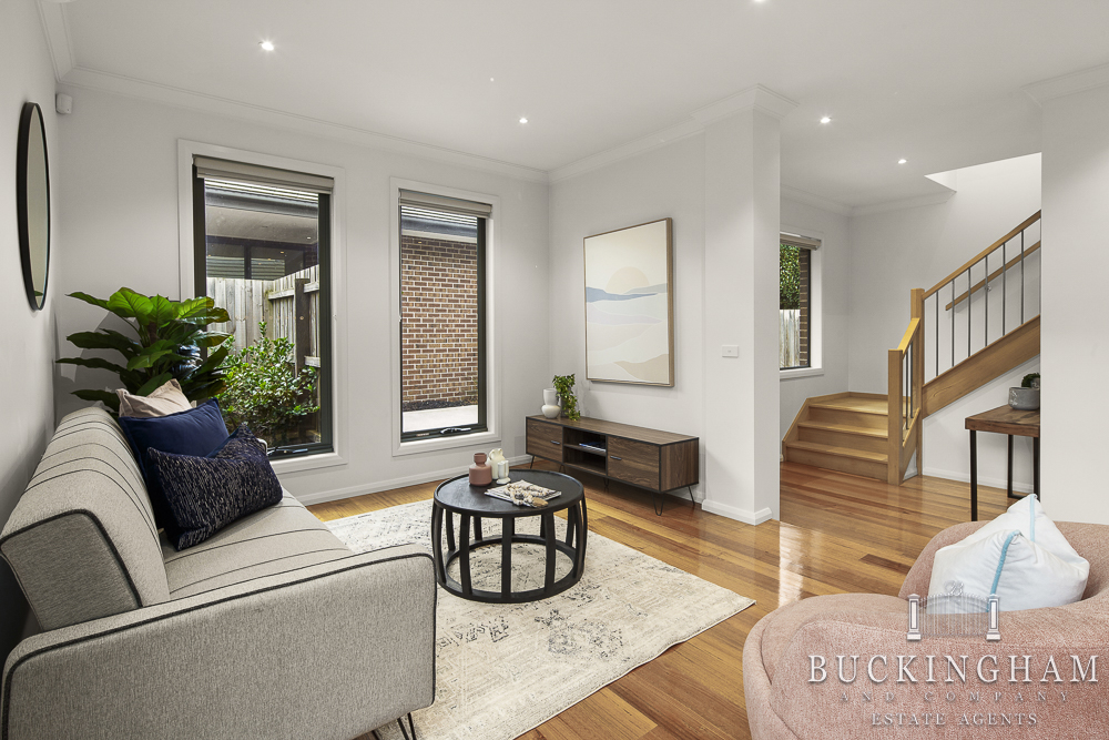 Nothing beats the freedom of modern low maintenance living, and now it can be yours! This stunning 2-storey home features 3 robed bedrooms (ground floor main with WIR/ensuite), bright family bathroom, open study/retreat and kitchen/dining/living zone with s/steel appliances, stone benchtops, lovely morning sun and stacker doors to a fantastic courtyard and entertainer’s deck. Split system heating/cooling ensure year-round comfort, while extras include polished timber floors, lots of natural light, crisp modern styling, 2 powder rooms (upstairs/downstairs) and lockup garage. Less than 1km from Watsonia shops and train, you’ll have the upcoming Northeast Link just moments from your door. Easy living awaits you!
