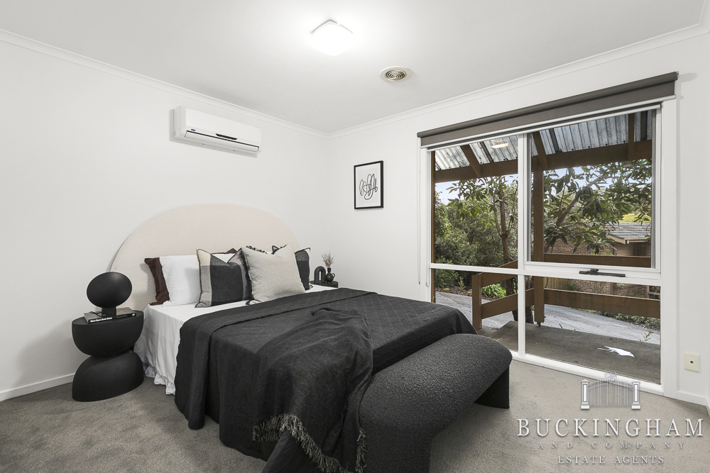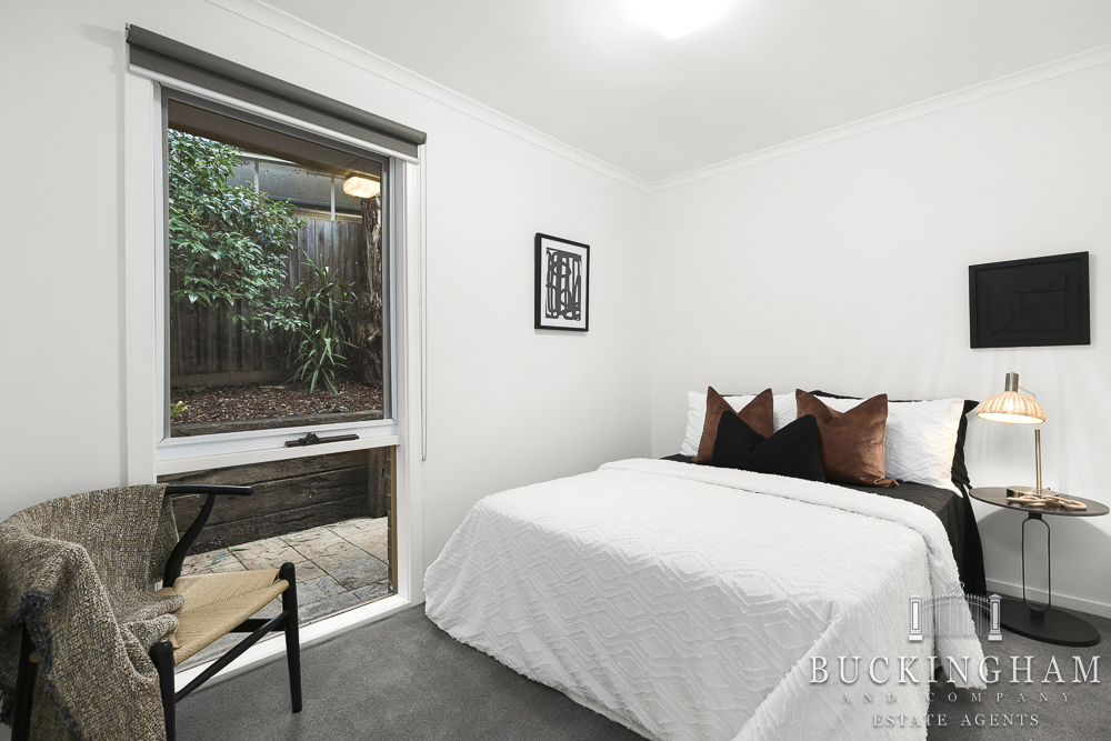 Beautifully presented and set to the back of the block for immeasurable privacy, this inviting home enjoys contemporary style throughout a light and airy living room, adjoining kitchen/meals with lovely garden aspect, 2 comfortable bedrooms and crisp white bathroom. A garden haven awaits outside, delivering a vast covered entertaining space, level lawn terraces and lots of leafy appeal, while other highlights include abundant natural light, hardwood floors, ducted heating, split system air-con, lockup garage and additional parking space. Tucked in a pretty complex just moments from Were Street cafes, central Greensborough and every Eltham amenity too – simply move in, unpack, put your feet up and enjoy!