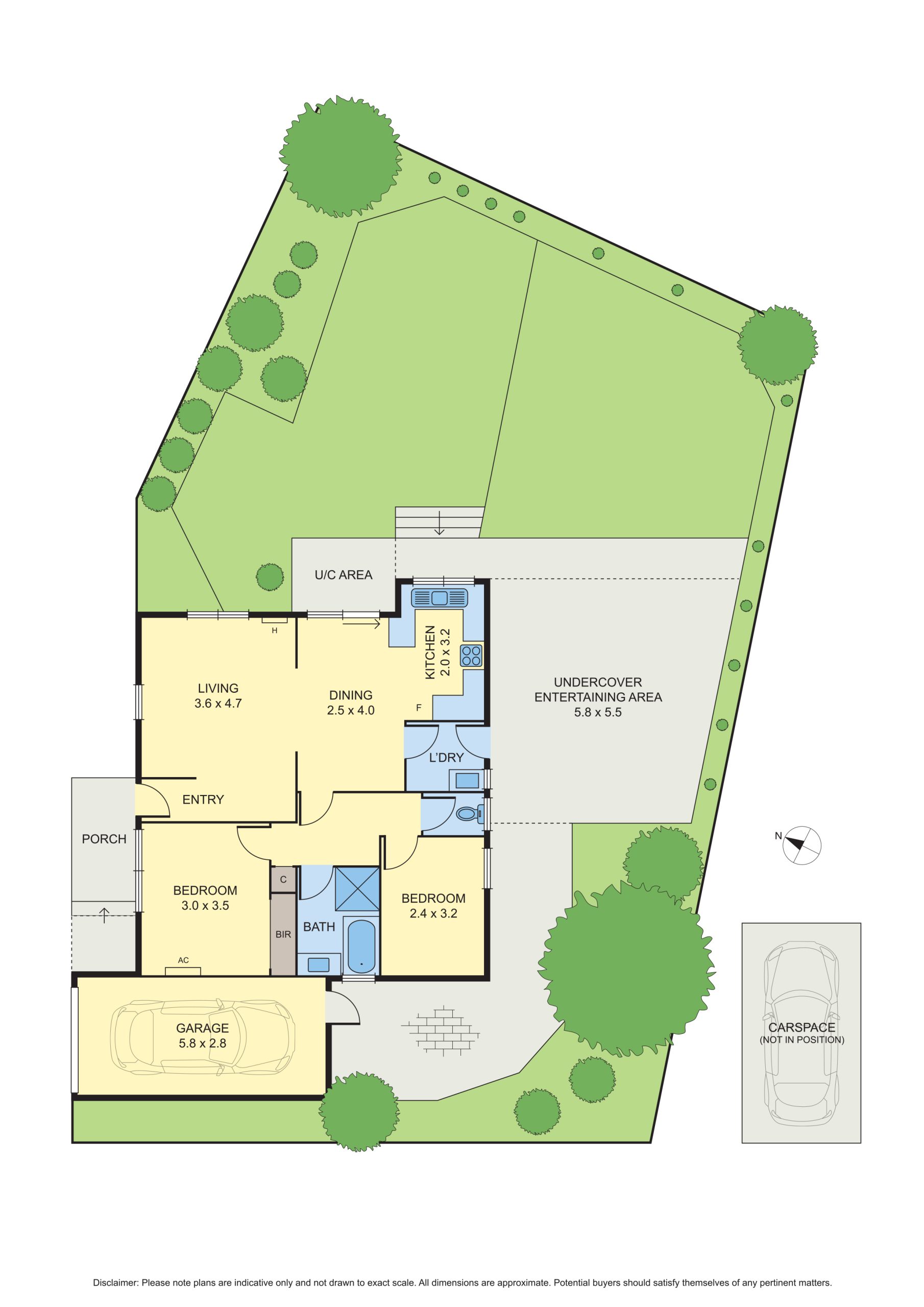 2 bedrooms, 1 bathroom, full-size laundry, ducted heating, air-con