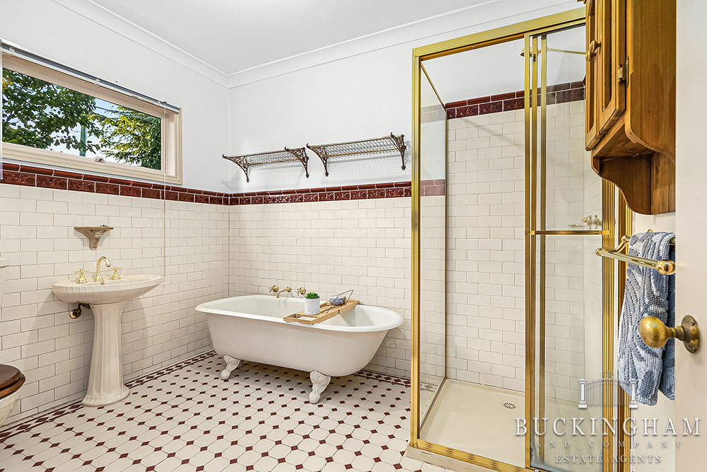 Period-style main bathroom, full-size laundry