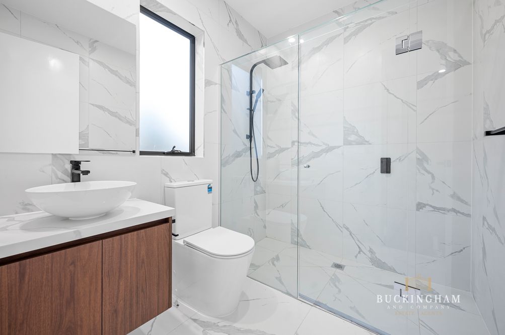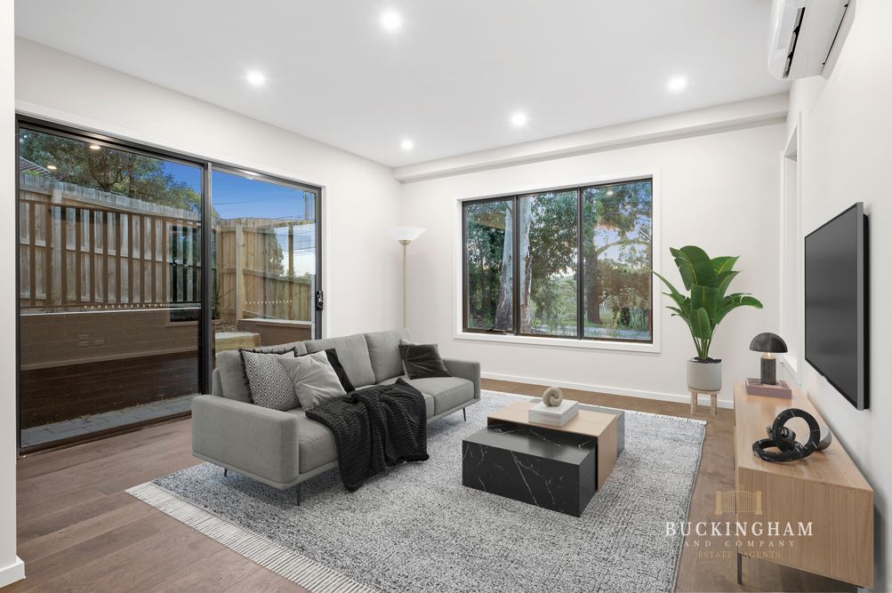 From its striking architectural exterior to its balanced proportions and floods of natural light, this stylish Montmorency home is ready to impress. Best of all it is brand new! An inviting living/dining room greets upon entry, leading to the gleaming kitchen with quality appliances and chic stone benchtops. All 3 bedrooms are zoned upstairs (main with ensuite) along with the sleek fully tiled bathroom, while downstairs the full sized laundry also incorporates a handy powder room. Featuring high ceilings, split system heating/cooling, integrated double garage and easy care courtyard, this home has easy access to Were Street and Lower Plenty shops, schools, transport and Plenty River Trail. Act now!