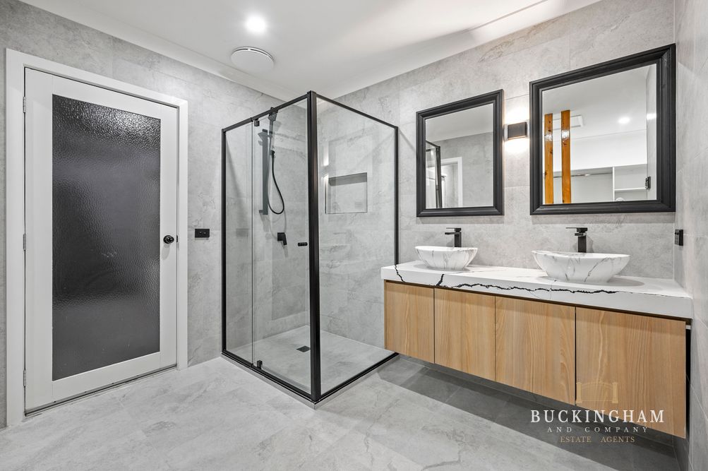 The refined floorplan showcases a huge open plan living room / dining area plus rumpus, complemented by an expansive brand new kitchen with timber paneled accents, 80mm stone benchtops, soft close cabinetry and excellent storage space. An indulgently large master bedroom features a newly fitted walk-in robe and high end sparkling ensuite; whilst a second master suite accesses a two way bathroom through a hidden entry.