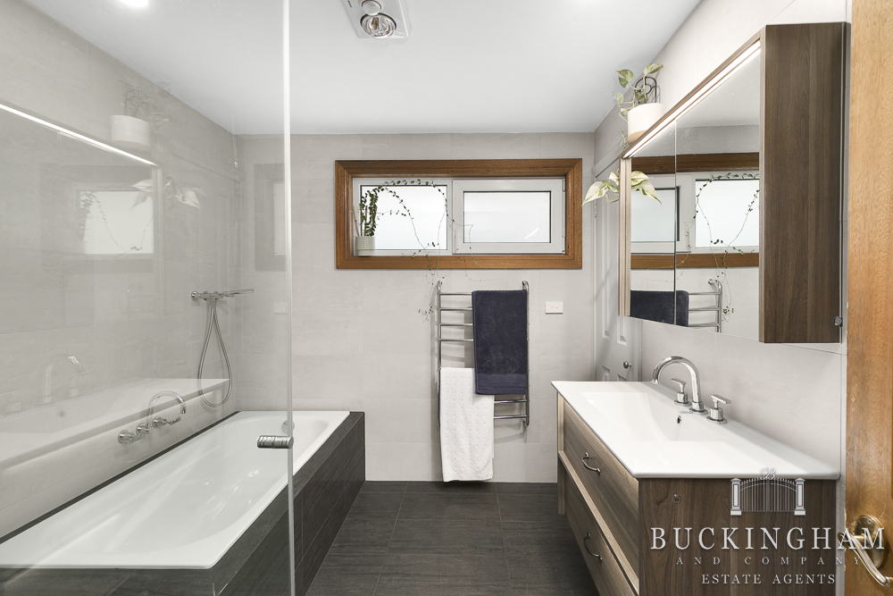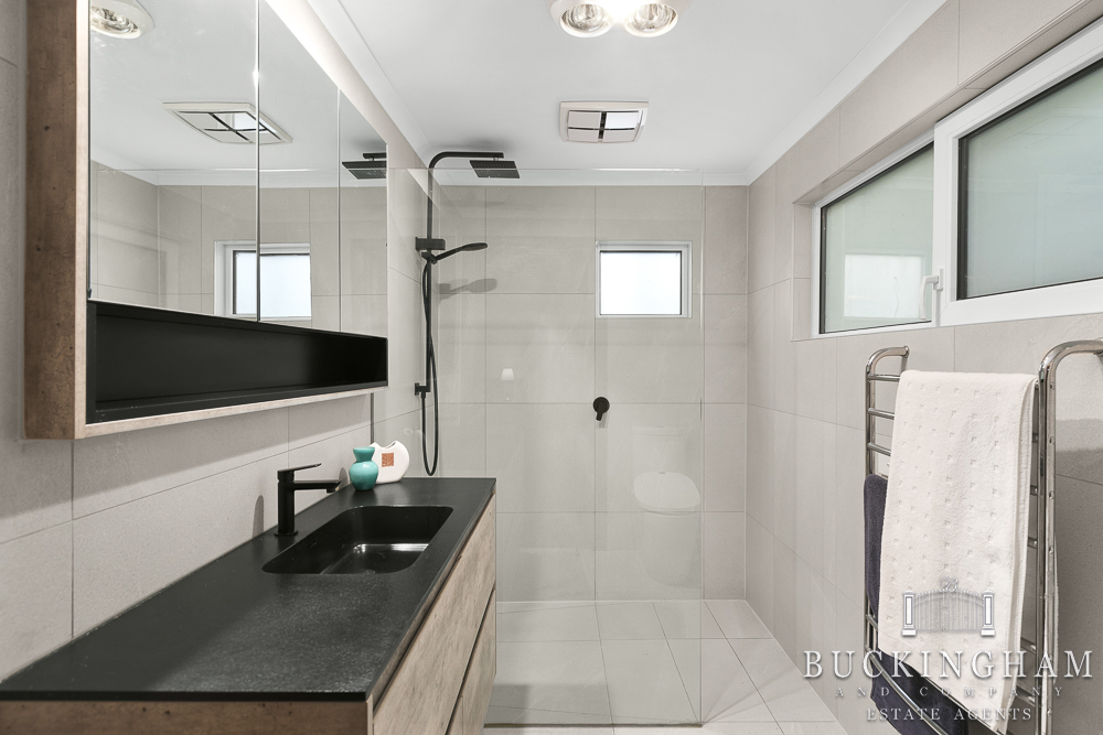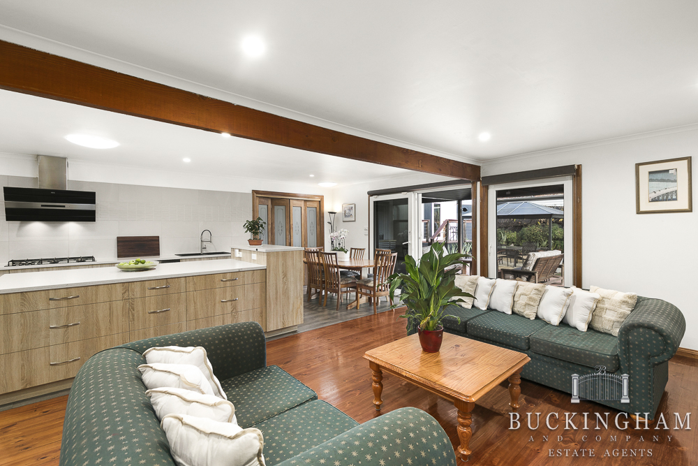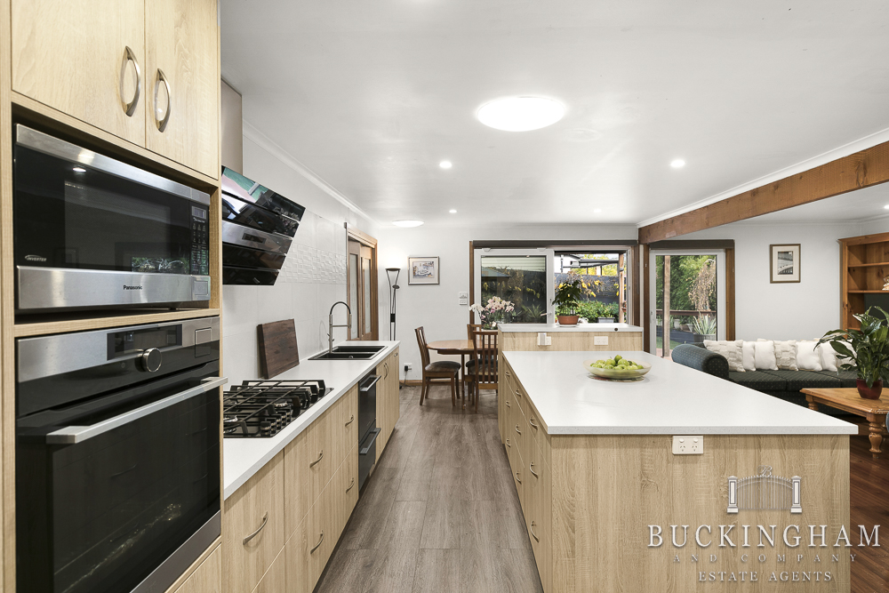 This unique central Greensborough home offers spacious family living in a low maintenance format, with convenience that is simply unbeatable! Set on an easy to manage 602m2, the 4-bedroom design enjoys seamless indoor/outdoor flow, delivering 2 inviting living zones, 2 bathrooms, study, updated kitchen with walk-in pantry, quality appliances and coffee nook, plus a fabulous Modwood deck that overlooks a private and secure garden ideal for modern family life. Solar electricity and double glazing make this home economical and efficient, while extras include split system heating/cooling, timber floors, garden sheds and more. Just a few steps from Greensborough Plaza and primary school – inspection will impress!