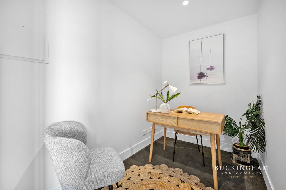 A separate study/home office/bedroom adds versatility whilst the spacious bedroom has its own balcony access and views of its own.