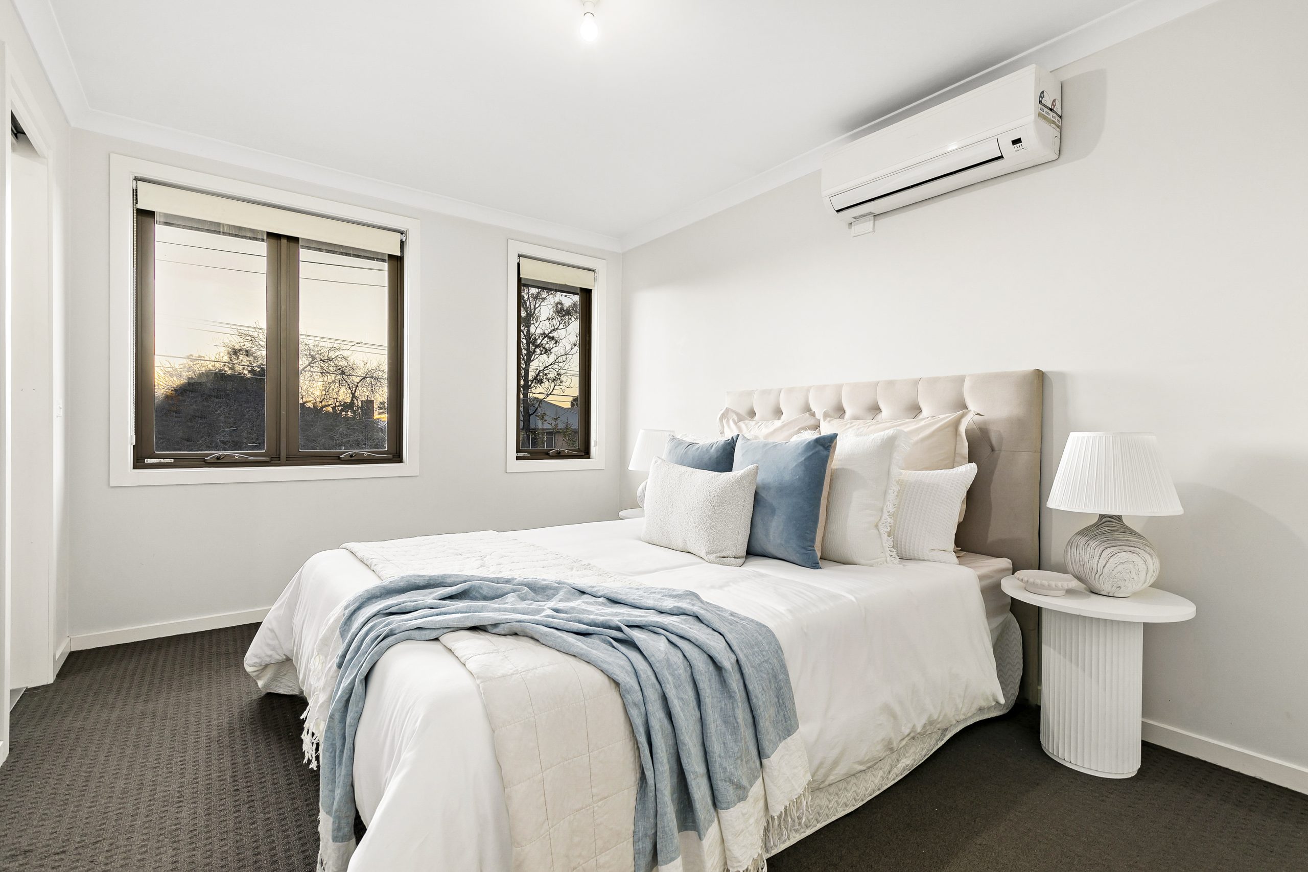 A dream for anyone aspiring to an easier way of living, this beautifully presented property offers an inviting 2-storey design complete with sunny rear deck and a manageable courtyard garden. The irresistible interior enjoys a versatile neutral colour palette and delivers 2 good-sized bedrooms (main with ensuite), modern bathroom and front-of-house study. The kitchen is light and inviting, complete with stone benchtops and s/steel appliances, while the accompanying meals/living zone has huge stacker doors that step straight out to the deck and garden. With welcome extras like split system heating/cooling, integrated garage and garden shed, this home is metres from the bus stop, Greensborough Plaza, Ring Road and more.