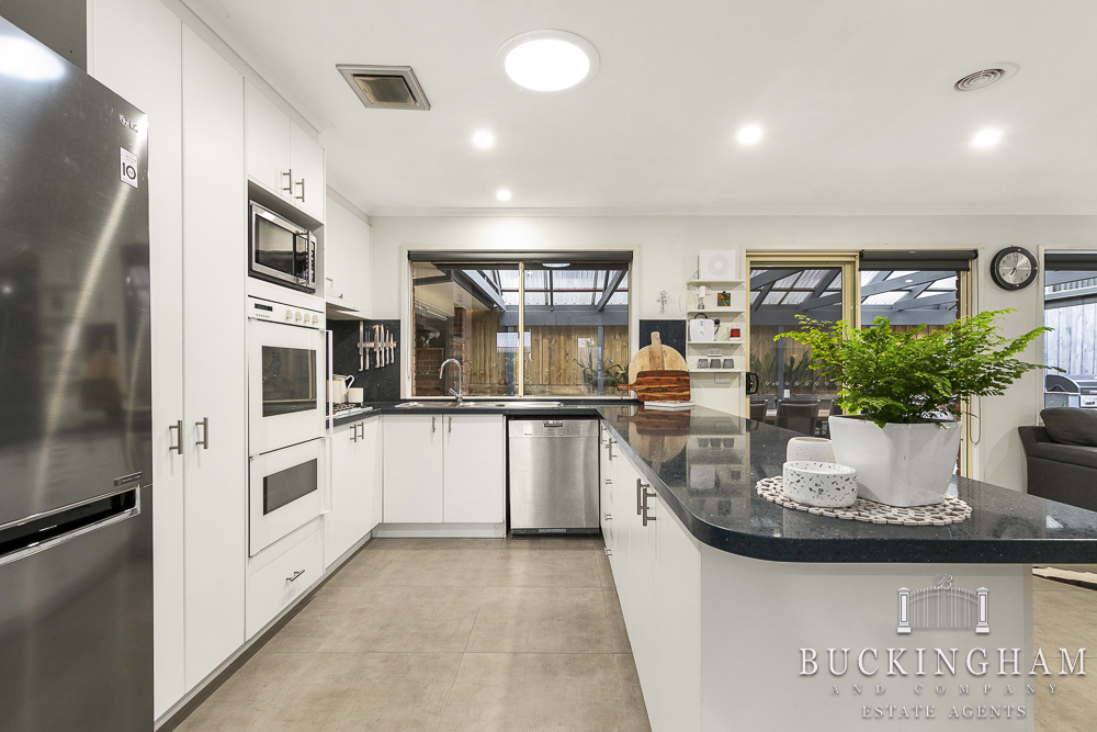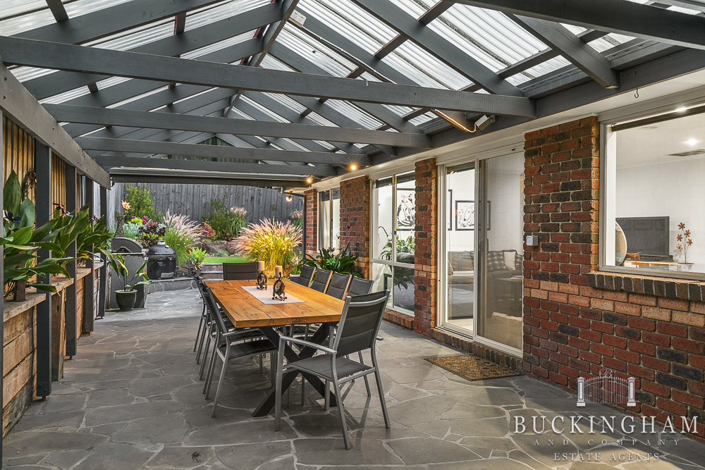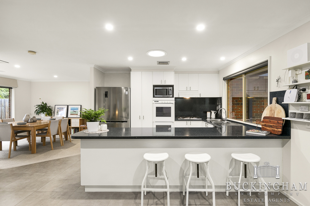A total surprise package of space, natural light and stunning private gardens, this Yallambie home simply has to be seen to be appreciated. Its flowing single level design delivers 4 robed bedrooms (main with walk-in robe, ensuite and pretty bay window), spotless family bathroom, light and airy lounge/dining area and central kitchen/meals/living complete with stone benchtops, quality appliances and vast bench/storage space. The covered alfresco adds yet more flexibility, complemented by beautiful bluestone paving, built-in BBQ and gorgeous gardens. With extras like ducted heating/cooling, solar electricity, remote garage, dual driveways and great Yallambie convenience, you’ll need to be quick to make this one yours!