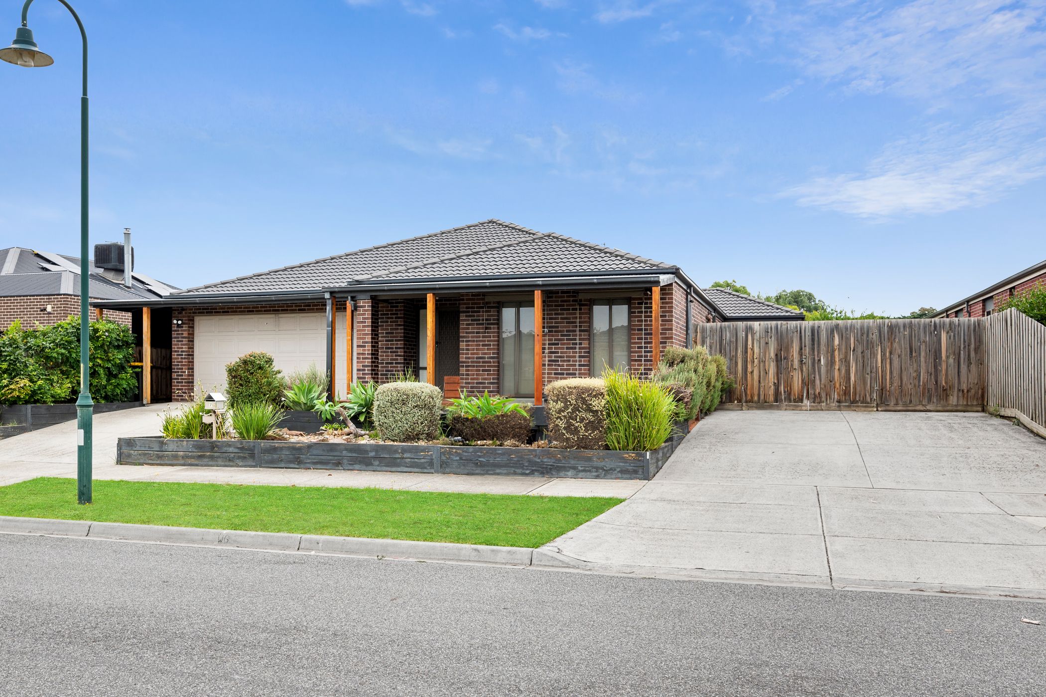 Just as brilliant, the outdoors has just as much to offer including garden sheds, merbau planter boxes, children’s play equipment, vast grassy amusement space (with room for a pool!) and a double oversized garage with integrated access.