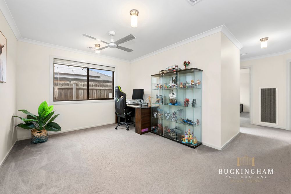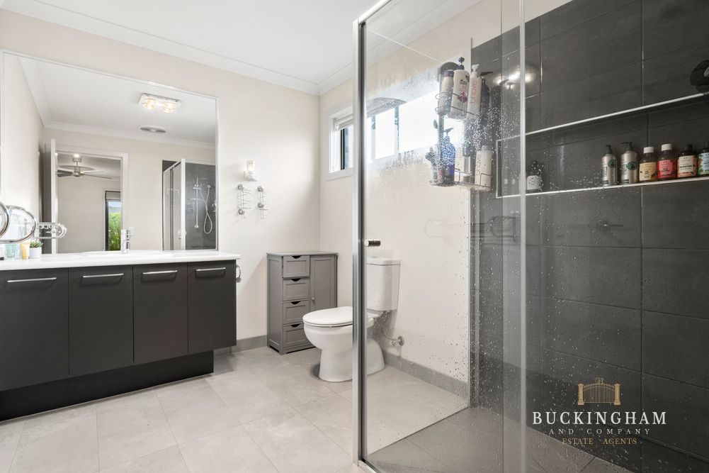 Three plentiful living areas border a classy kitchen incorporating stone benchtops, new stove, steam assist / air fryer capable oven & double pantry overlooking a generous double alfresco with café blinds & bench seating. Customised to the hilt the home offers ducted heating & refrigerated cooling with zoning available to every room, fibre to the premises for super fast NBN, ceiling fans, 5kw solar with inverter & tinted windows.