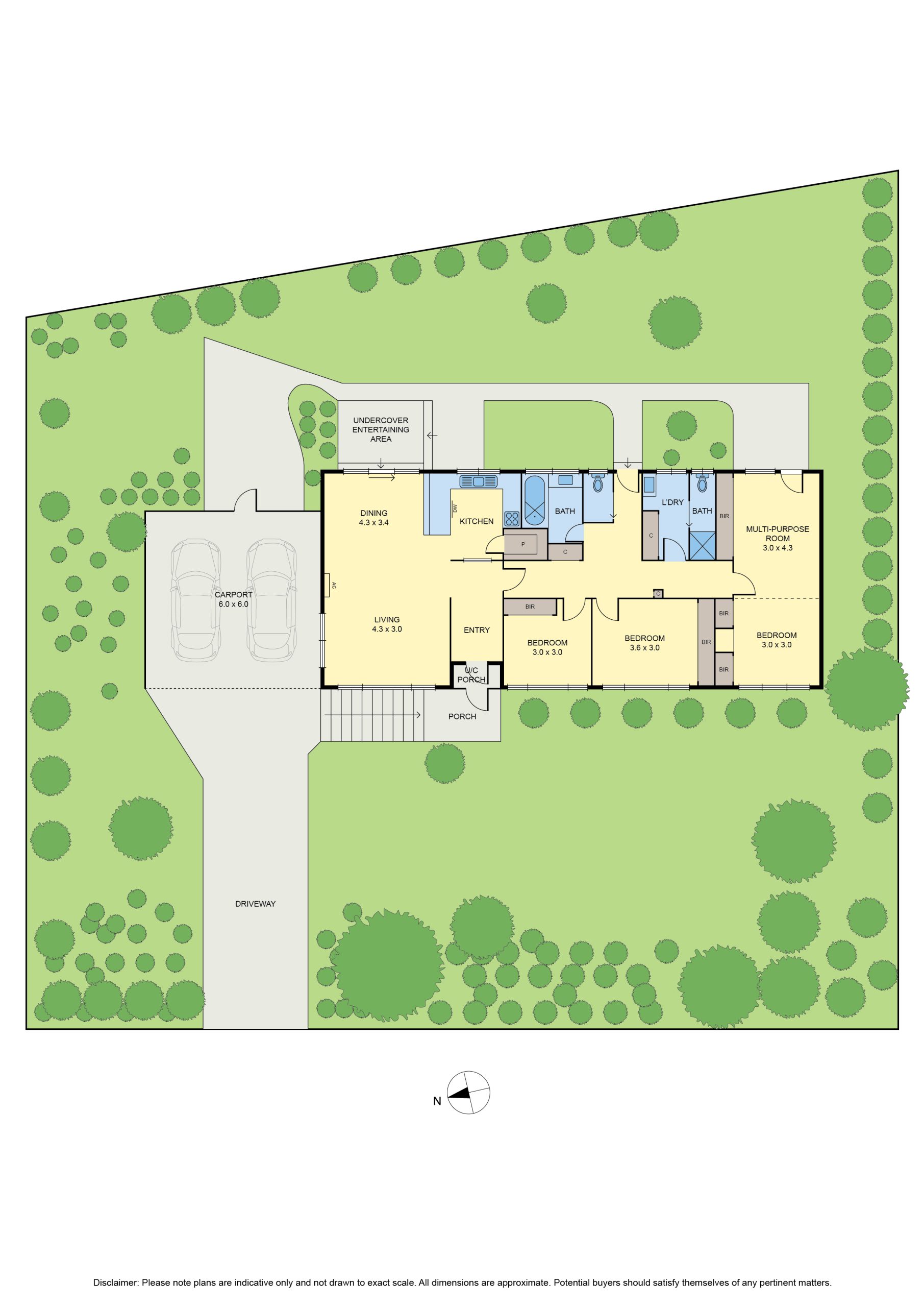 3 robed bedrooms, 2 bathrooms, open plan meals/living area