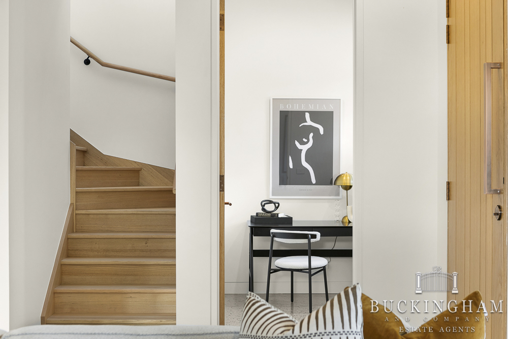 Office. The sunbathed deck and landscaped garden are ready for your first family BBQ, while extras include polished concrete floors, ducted heating/refrigerative cooling, internal elevator, double garage and more. With every Eltham convenience close to hand, this home is simply a cut above the rest.