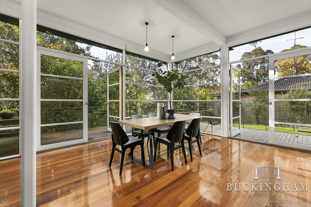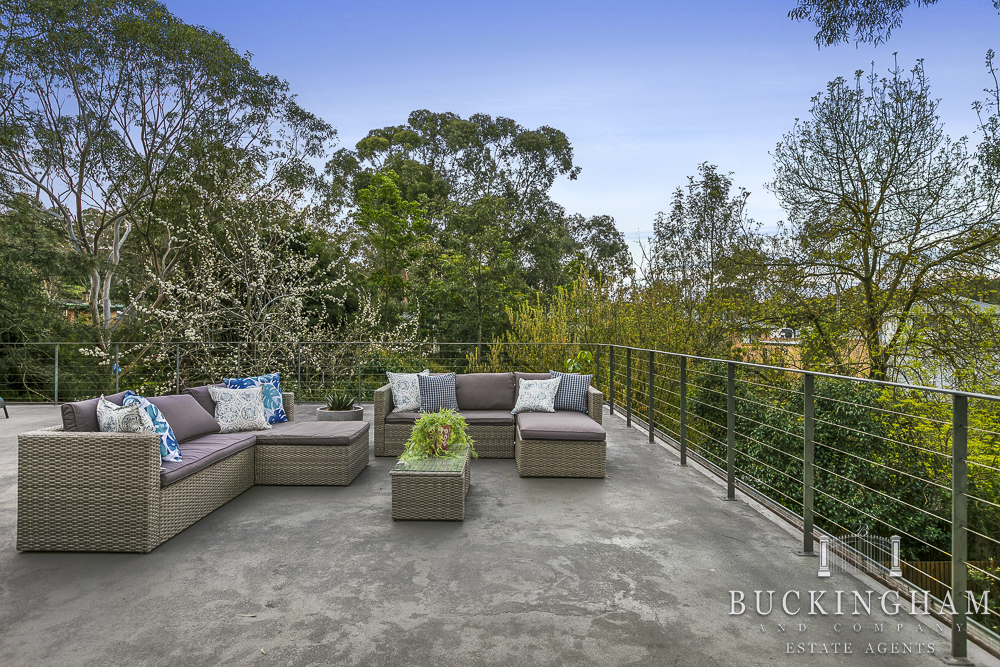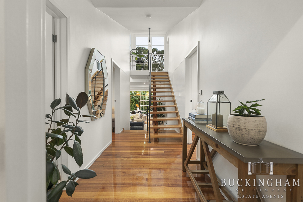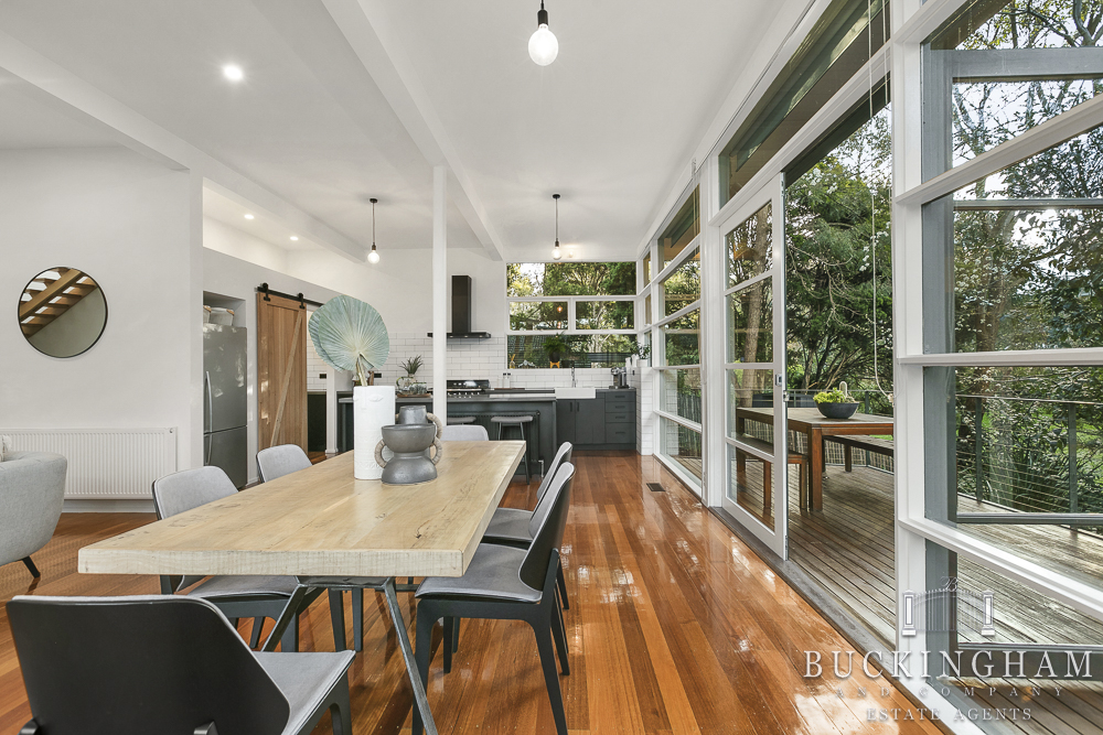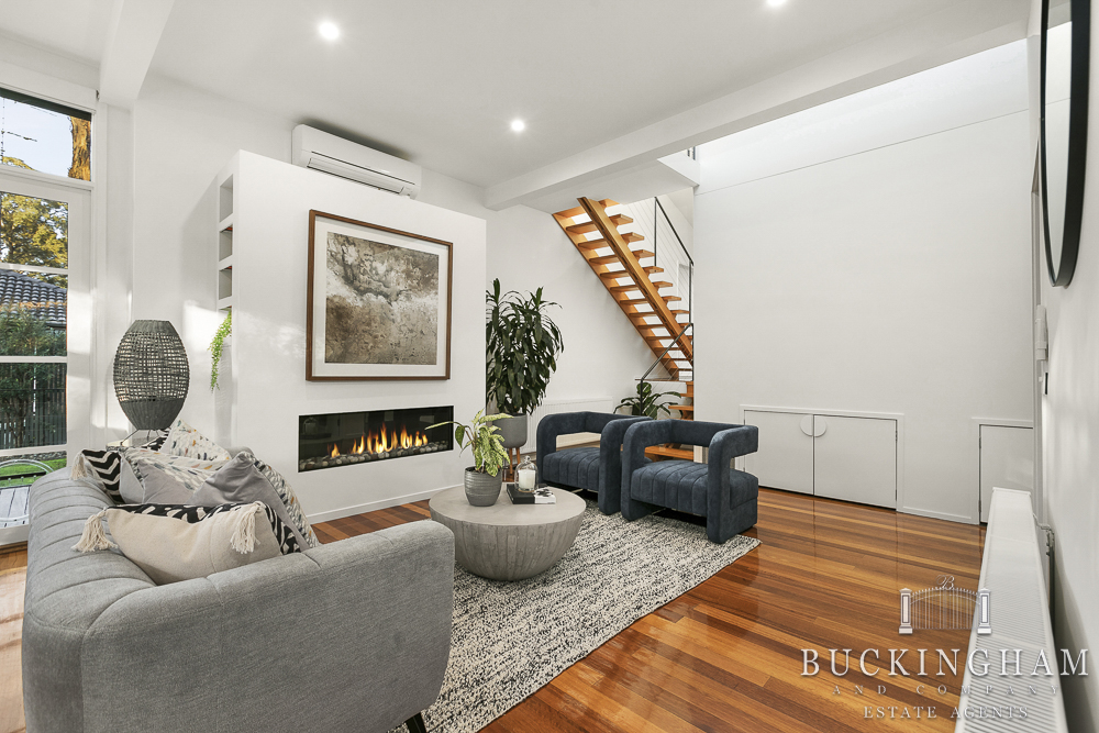 This unique and breathtaking home immerses you in beautiful natural greenery, with an enviable level of privacy from the outside world. The striking design features high ceilings and huge window expanses, delivering 3 robed bedrooms (main with WIR/ensuite), sleek family bathroom, well-appointed kitchen with quality appliances and walk-in pantry, plus a gorgeous open plan living/dining zone (with gas log fire) that steps straight out to the deck and garden. A huge rooftop terrace adds another inspiring dimension, while welcome extras include hydronic heating, split system air-con, double carport and shed. Only a short skip to Were Street shops, cafes and train, you’re only moments from schools, bus, parks and more.