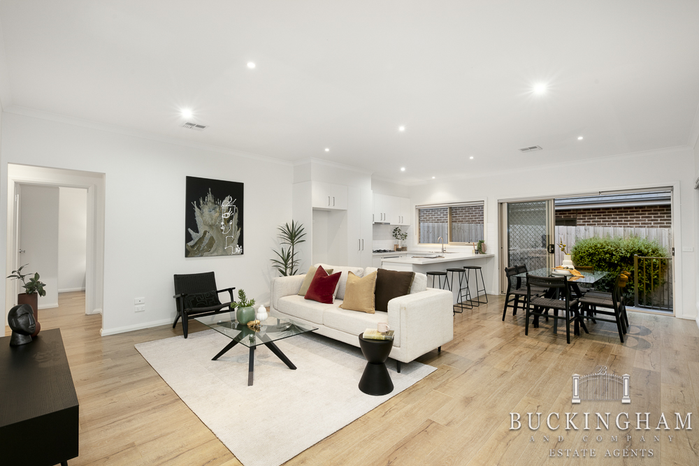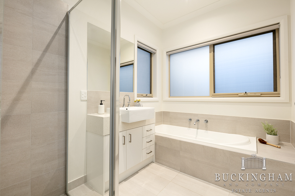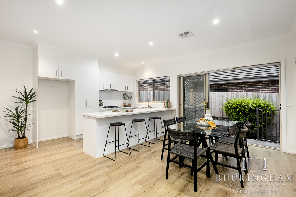 SOLD BY BUCKINGHAM & COMPANY This wonderful home is a pigeon pair 1 of 2 homes and is set to the back of the block for maximum privacy on an easy to manage allotment that allows you to move in, unpack and get on with enjoying life. The modern single level design features engineered Oak floors, ducted heating/cooling and plenty of natural light. The open plan kitchen/meals/living zone features stone benchtops, stainless steel appliances and stacker doors to the courtyard, while further accommodation includes 3 robed bedrooms (main with ensuite), stylish bathroom, powder room and full-sized laundry. The low maintenance courtyard, garden shed and lockup garage add further amenity, and you are so close to Greensborough Plaza, bus, train station and more. Inspect without delay!