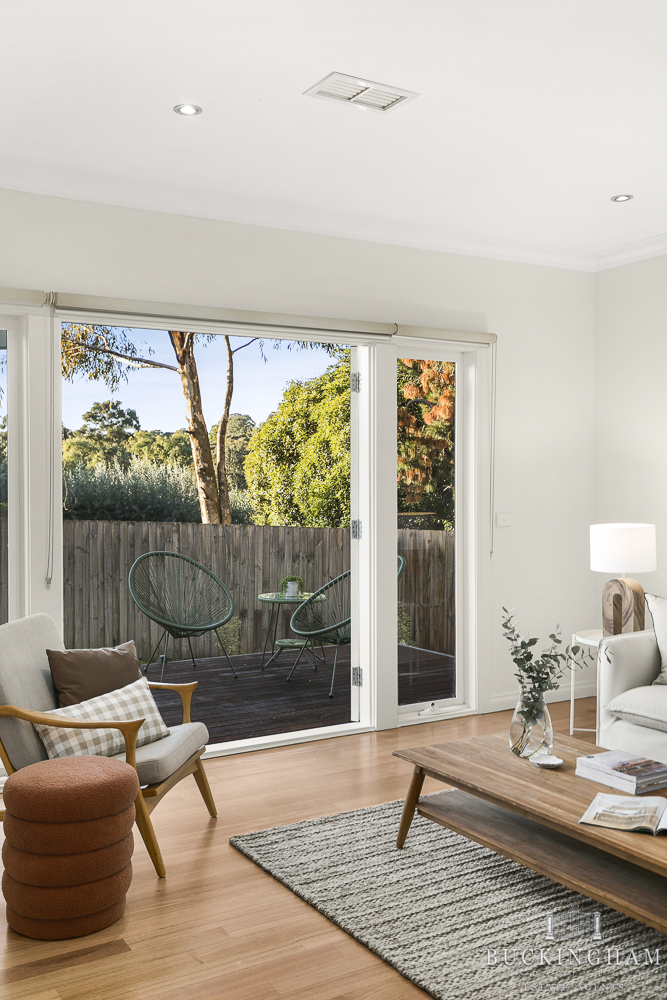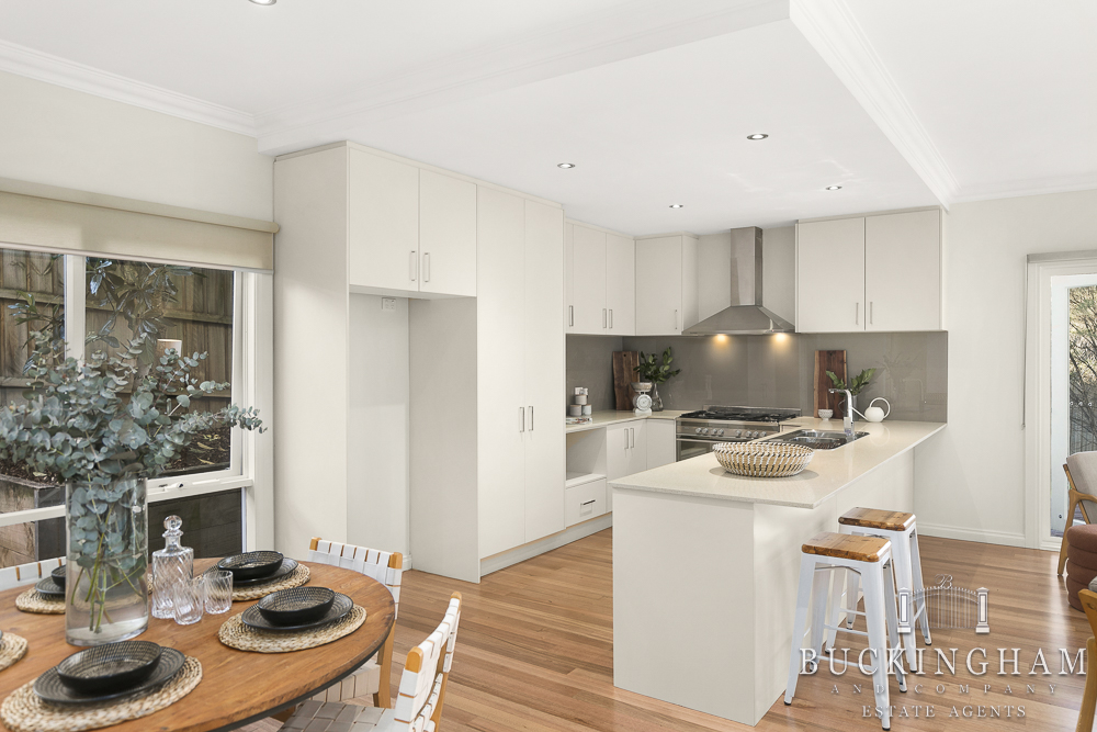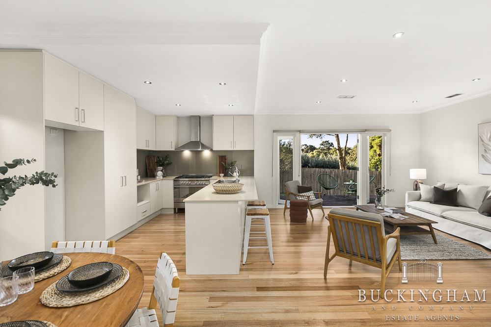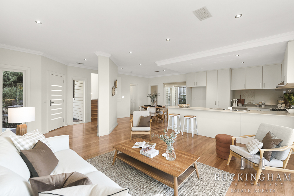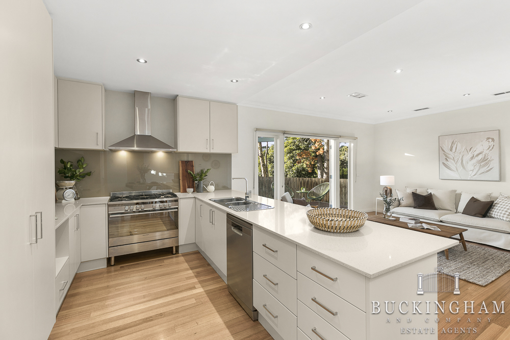 This contemporary stunner is positioned for top privacy on an inviting 370m2 that is certain to impress. The stylish multi-level design features hardwood floors, fresh neutral decor and generous proportions from room to room. It delivers 3 beautiful bedrooms (main with walk-in robe and ensuite) and zoned bathroom, plus a spacious upstairs retreat and stunning kitchen/meals/living zone boasting stone benchtops, s/steel appliances and lots of bench/storage space. The rear deck catches lovely morning sun and leads to the spacious courtyard garden with lawn and fresh landscaping. With welcome extras like ducted heating, air conditioning, full-sized laundry, powder room and integrated double garage – this is it!