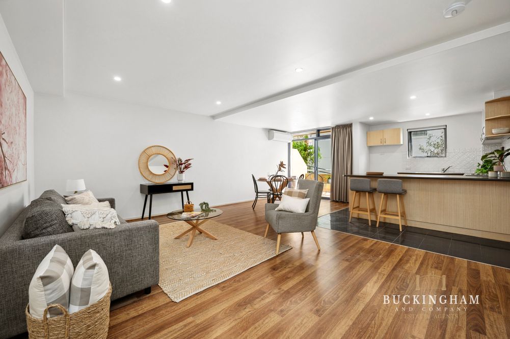 This stylish 1 bedroom, 3rd-floor apartment is sure to impress. From here it is a short walk to just about everything! A combined good-sized living/dining room sets the scene, accompanied by the open-plan kitchen equipped with a breakfast bar and stainless steel appliances. The main bedroom is a good size and comprises of BIR.